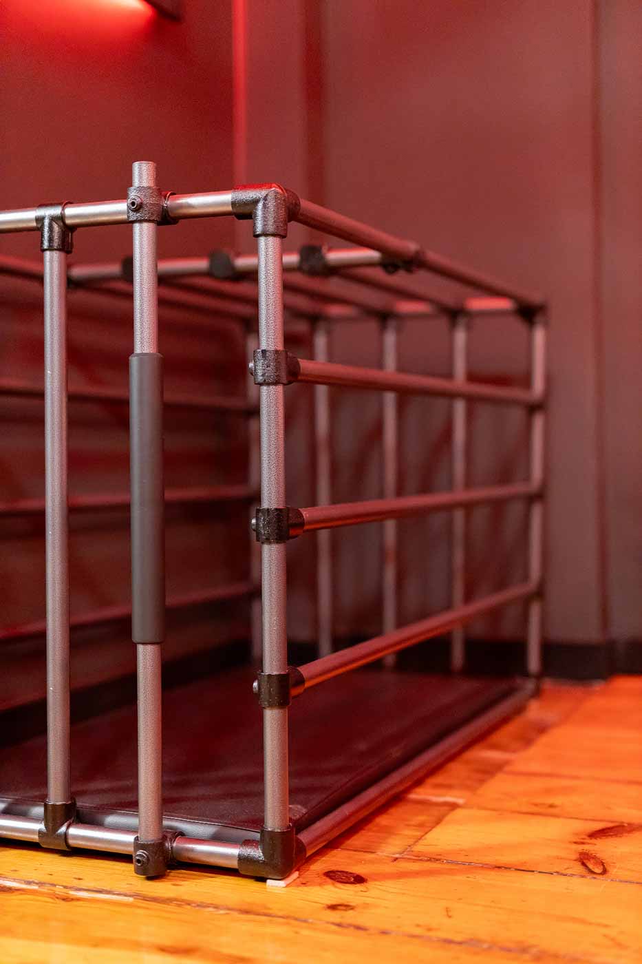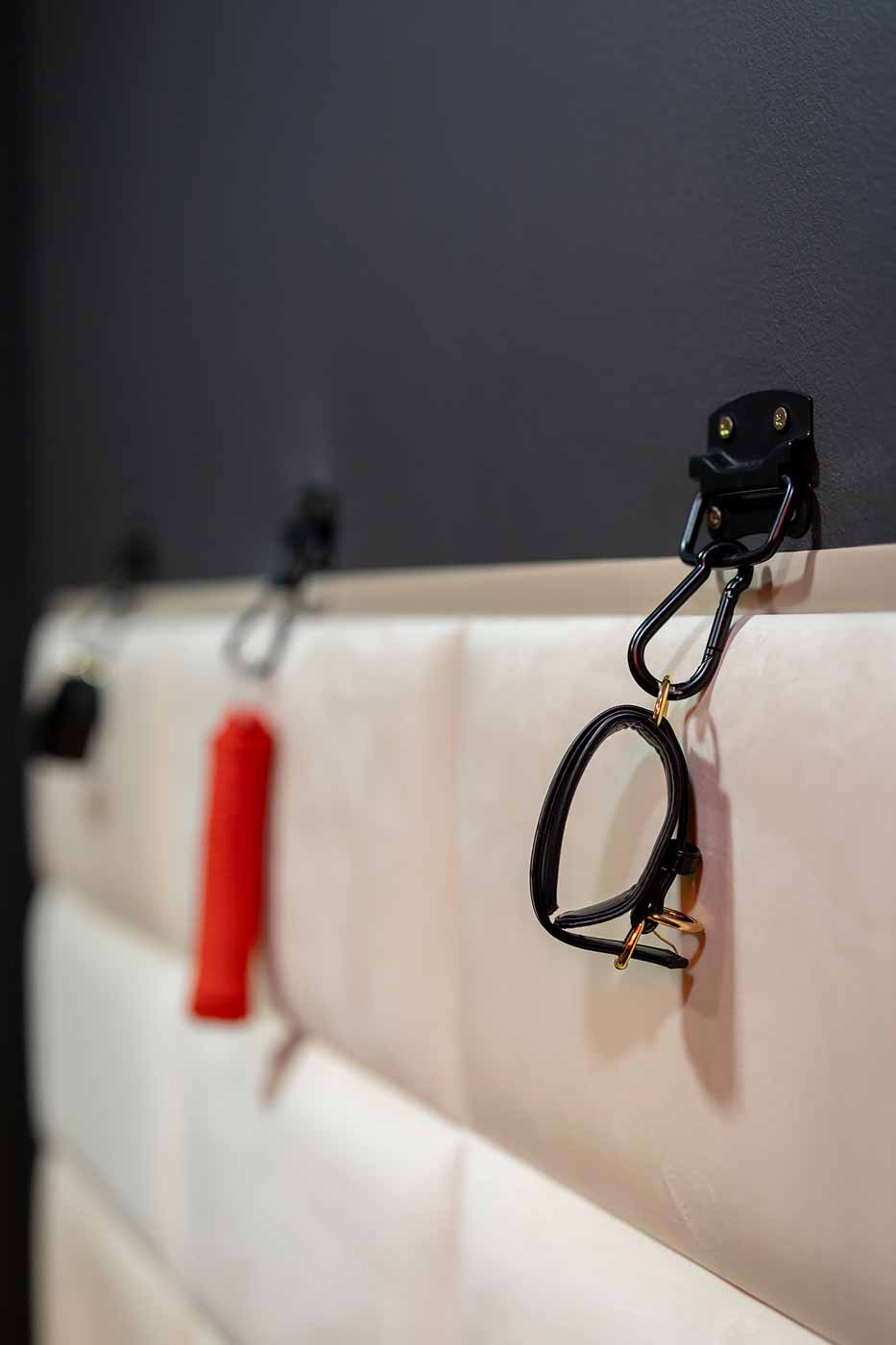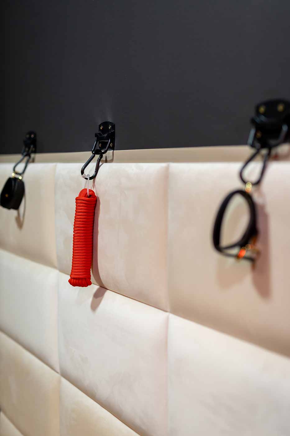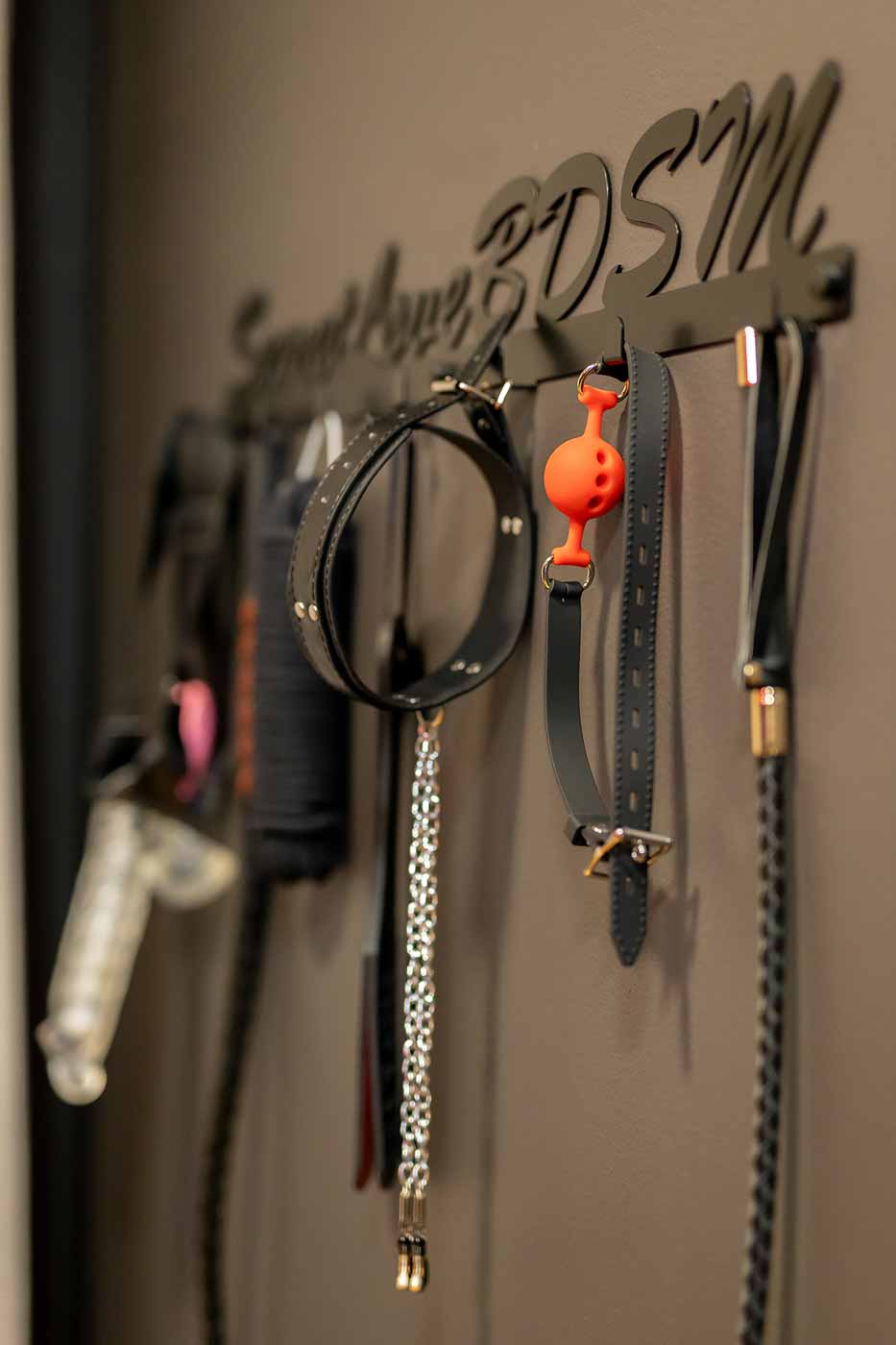 Część BDSM ma mocno klubową oprawę: kratownice, metalowe elementy i scenograficzne podświetlenia budują przestrzeń, która jest gotowa do użycia bez improwizowania aranżacji. Są tu rozwiązania, które pozwalają prowadzić zabawę w różnych wariantach – od bardziej „estetycznych i kontrolowanych” po intensywniejsze, zależnie od granic i nastroju. Dużą przewagą tej strefy jest to, że daje wrażenie uporządkowania: wszystko jest spójne, czytelne i „na miejscu”.
