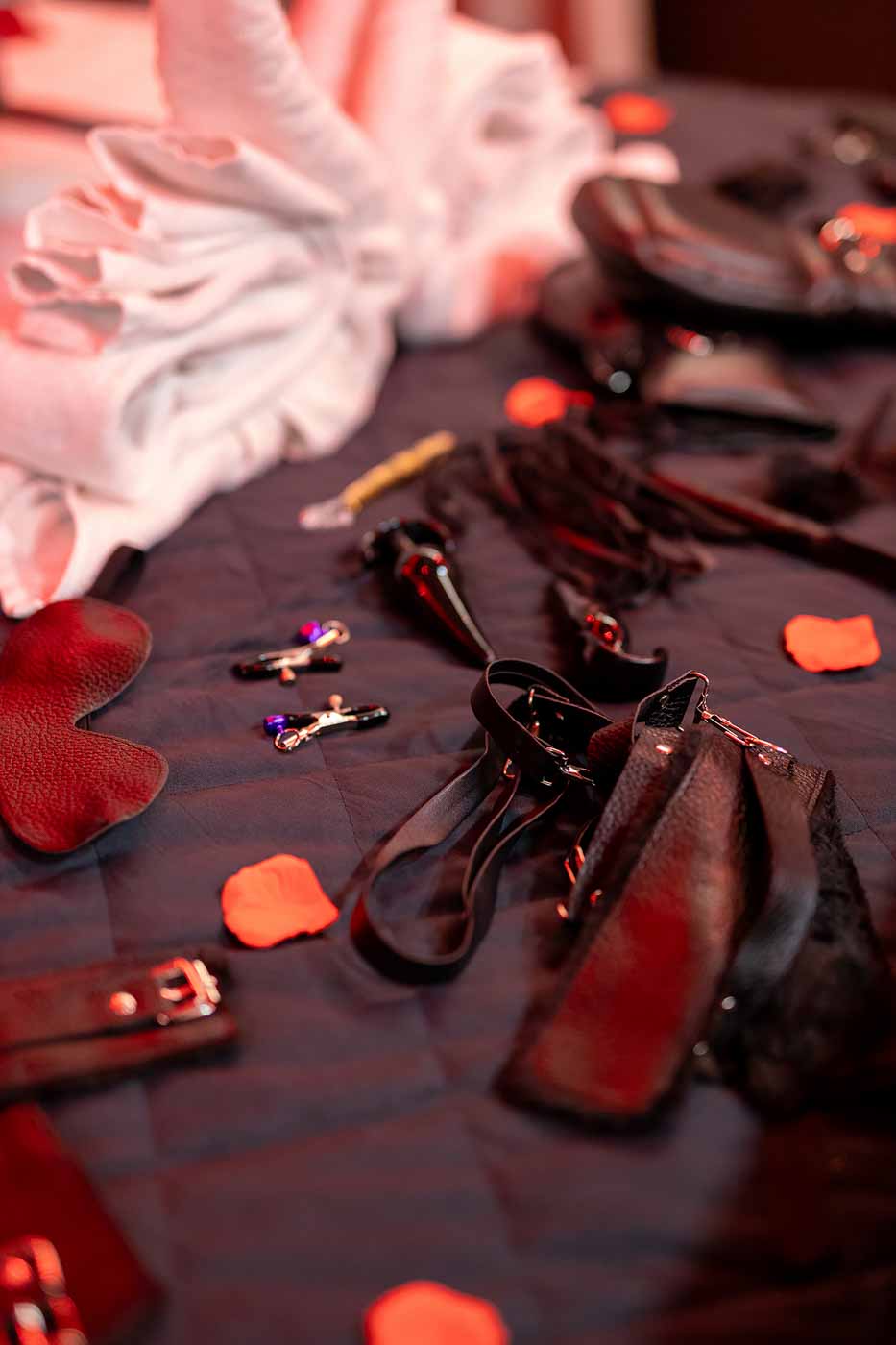 W tej wersji apartamentu ważnym elementem jest „tajemnica” – jeden z obszarów nie jest podany od razu „na tacy”. Mechanika jest prosta: część przestrzeni wprowadza napięcie i ciekawość, a odkrywanie kolejnych elementów buduje klimat bez konieczności tworzenia scenariuszy. To świetne rozwiązanie, jeśli lubisz, gdy wieczór ma prowadzenie: najpierw rozgrzewka i oswojenie przestrzeni, potem stopniowe przechodzenie do mocniejszej części, gdy pojawi się odpowiedni moment.