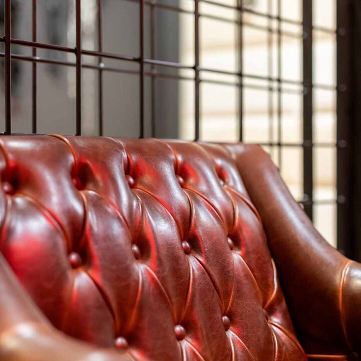 Poza strefą BDSM działa część lounge, która pozwala złapać przerwę i dystans – rozmowa, toast, zmiana tempa. Jest miejsce na wygodne siedzenie oraz stół, więc apartament sprawdza się także wtedy, gdy chcesz przeplatać intensywniejsze momenty spokojniejszymi. To ważny element całości, bo utrzymuje klimat, ale daje też „bezpieczną” przestrzeń na wyciszenie i kontrolę rytmu pobytu.